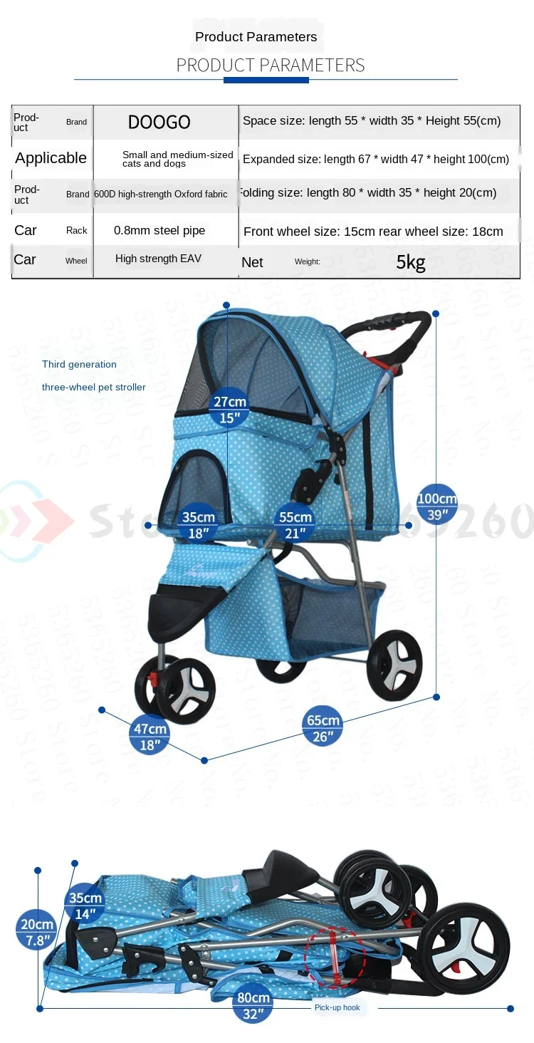 Lightweight Foldable Pet Tricycle Stroller